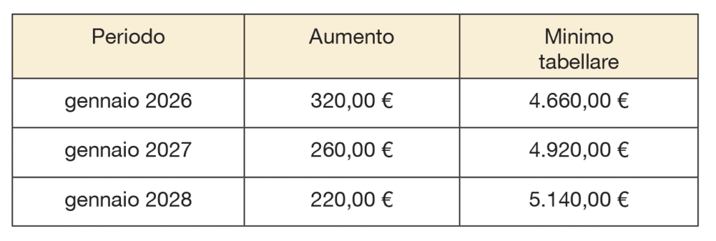 Il minimo contrattuale mensile fissato in 4.340,00 euro è incrementato come segue: