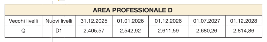 Di seguito la tabella con i nuovi minimi, considerando le nuove aree professionali: