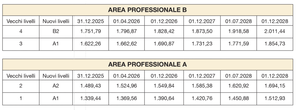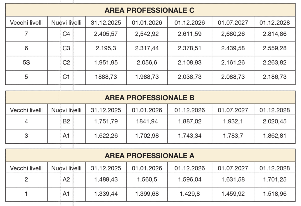 A partire da gennaio 2026, è previsto un aumento dei minimi contrattuali suddiviso in diverse tranche.
